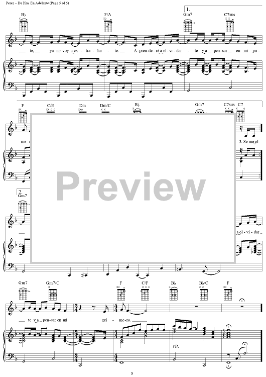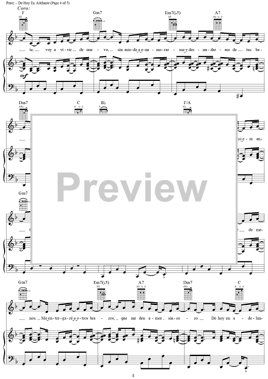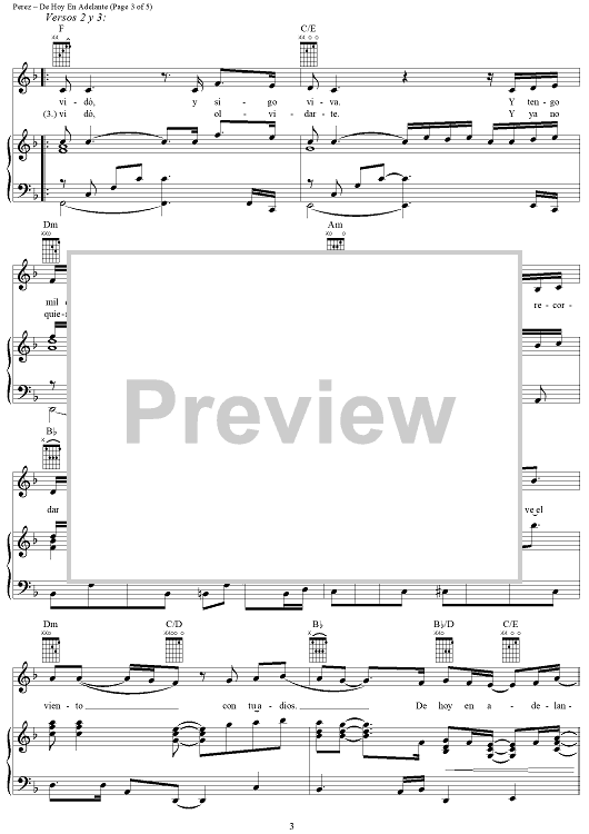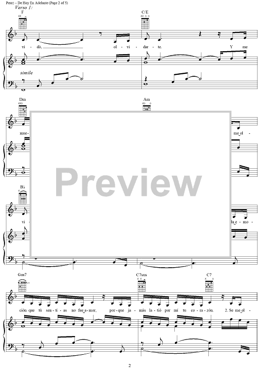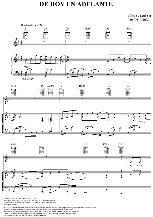 Digital Sheet Music for De Hoy En Adelante by Rudy Perez, Millie scored for Piano/Vocal/Chords; id:254830