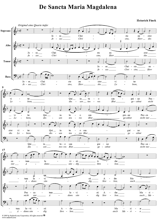 Digital Sheet Music for De Sancta Maria Magdalena by Heinrich Finck scored for Four-part Mixed Chorus; id:266844