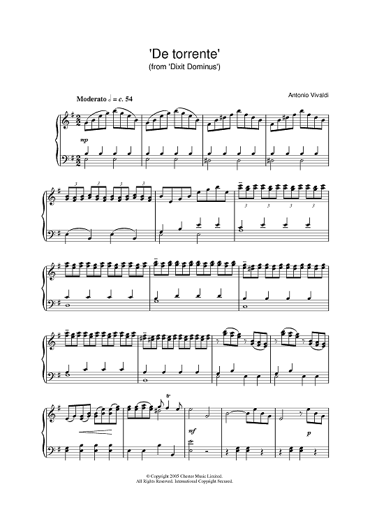 Digital Sheet Music for 'De Torrente' (from 'Dixit Dominus') by Antonio Vivaldi scored for Piano; id:383444