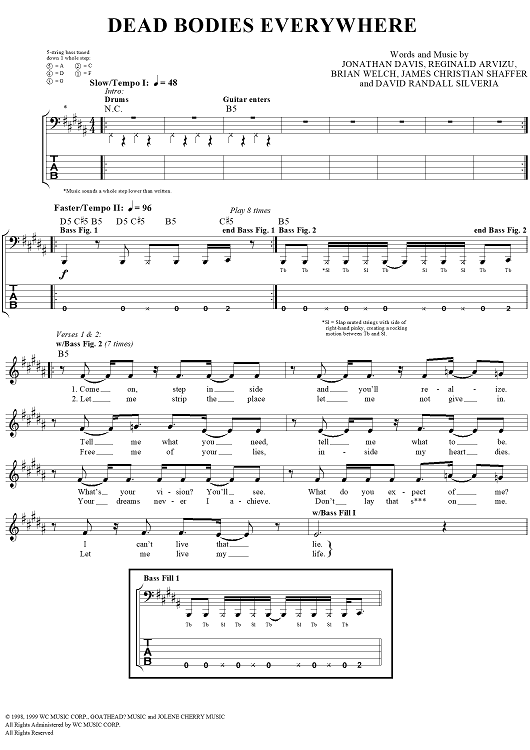 "Dead Bodies Everywhere" Sheet Music by Korn