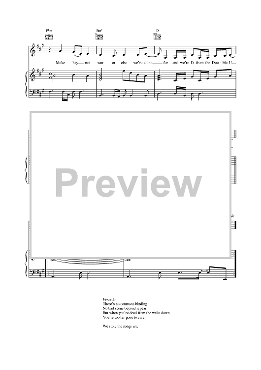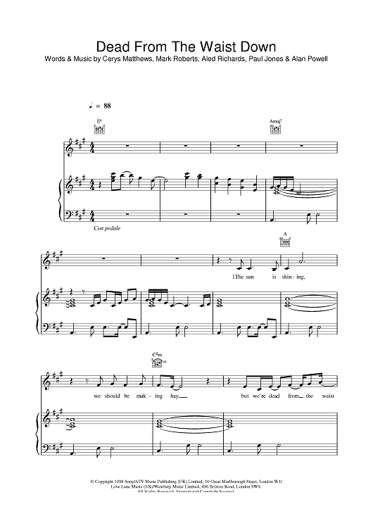 Digital Sheet Music for Dead From The Waist Down by Catatonia scored for Piano/Vocal/Chords; id:376813