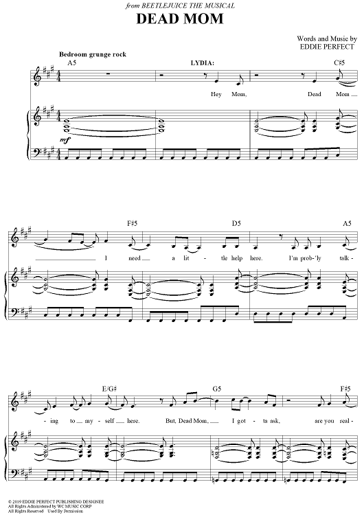 Digital Sheet Music for Dead Mom - from Beetlejuice - The Musical by Eddie Perfect scored for Piano/Vocal/Chords; id:467820