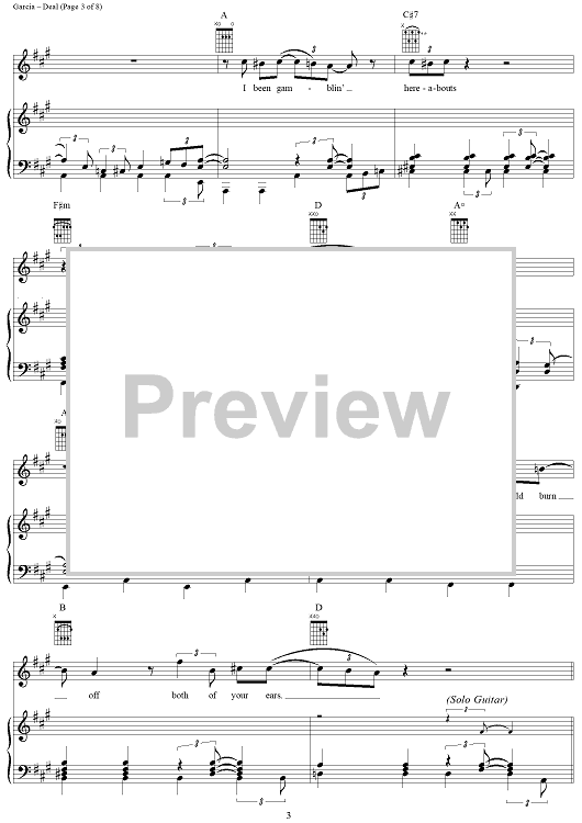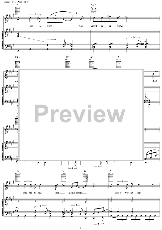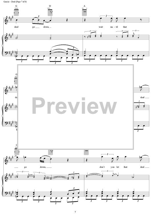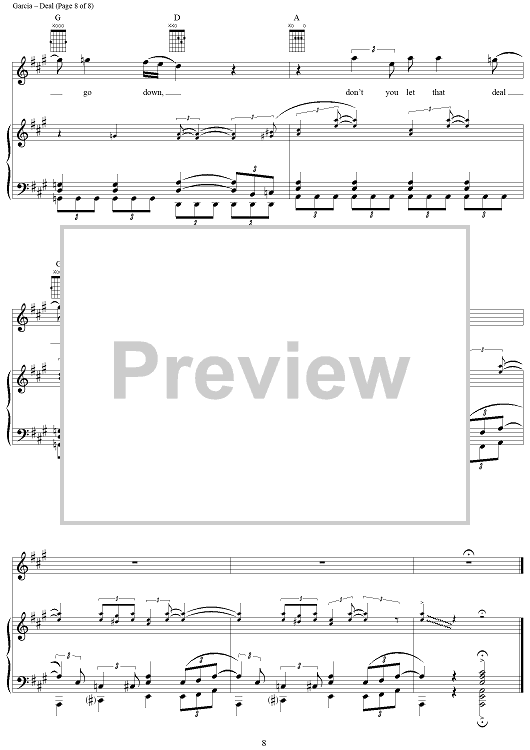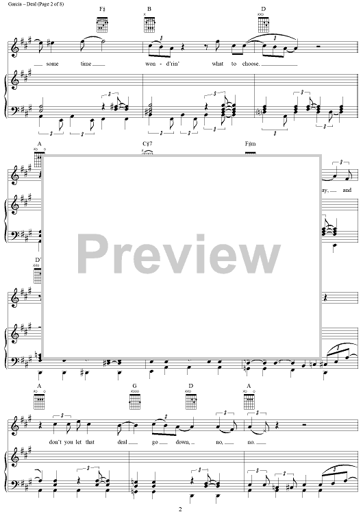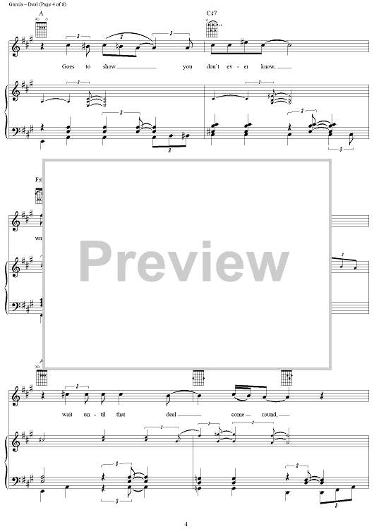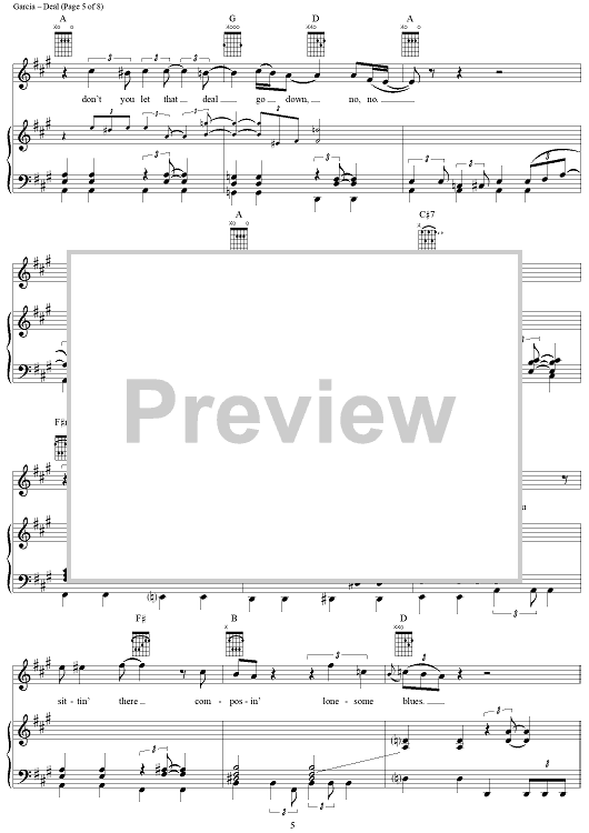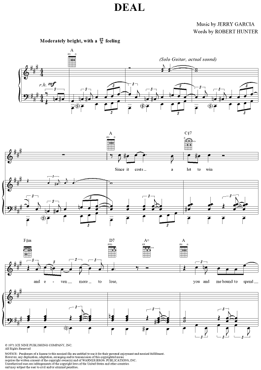 Digital Sheet Music for Deal by Jerry Garcia, Robert Hunter, Grateful Dead scored for Piano/Vocal/Chords; id:268766