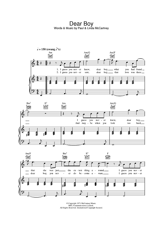 Digital Sheet Music for Dear Boy by Paul McCartney scored for Piano/Vocal/Chords; id:378226