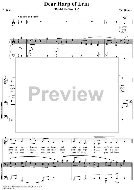 Digital Sheet Music for Dear Harp of Erin by D. Weir, Traditional scored for Piano/Vocal; id:258774