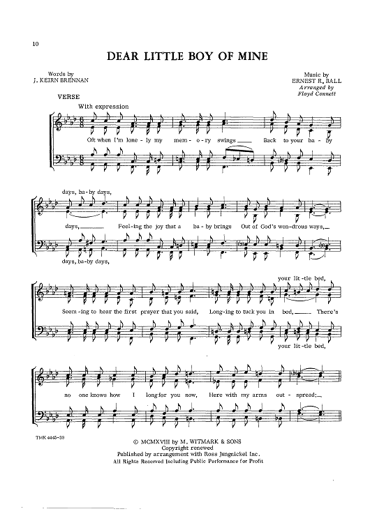 Digital Sheet Music for Dear Little Boy Of Mine by J. Keirn Brennan, Ernest R. Ball, Floyd Connett scored for Barbershop Quartet; id:423841