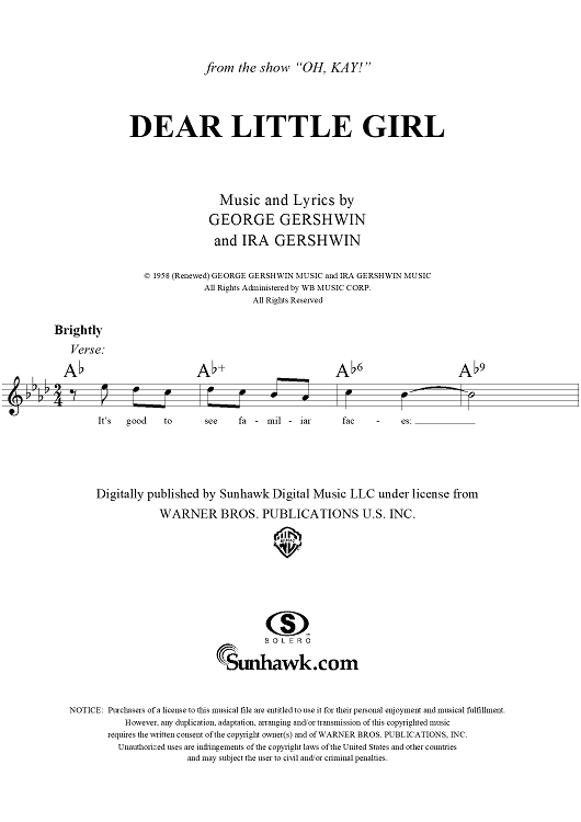 Digital Sheet Music for Dear Little Girl by , George Gershwin, Ira Gershwin scored for Lead Sheet; id:283604