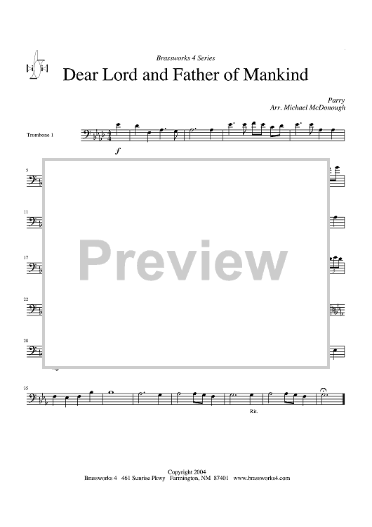 Digital Sheet Music for Dear Lord and Father of Mankind - Trombone 1 by Charles Hubert Hastings Parry, Michael McDonough scored for Trombone Quartet; id:317712