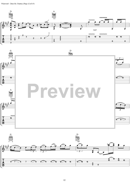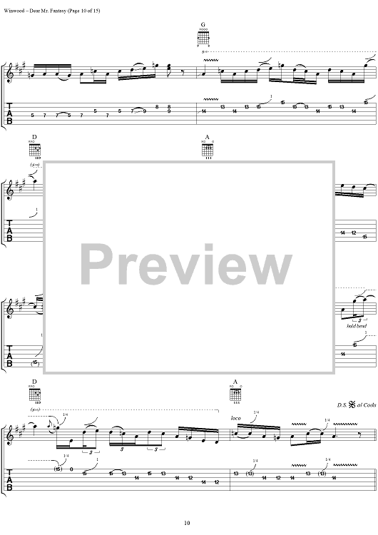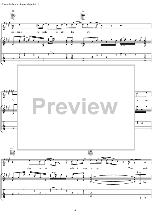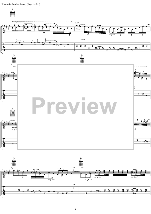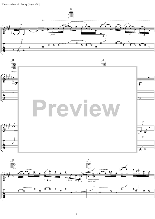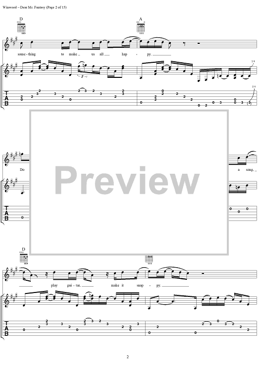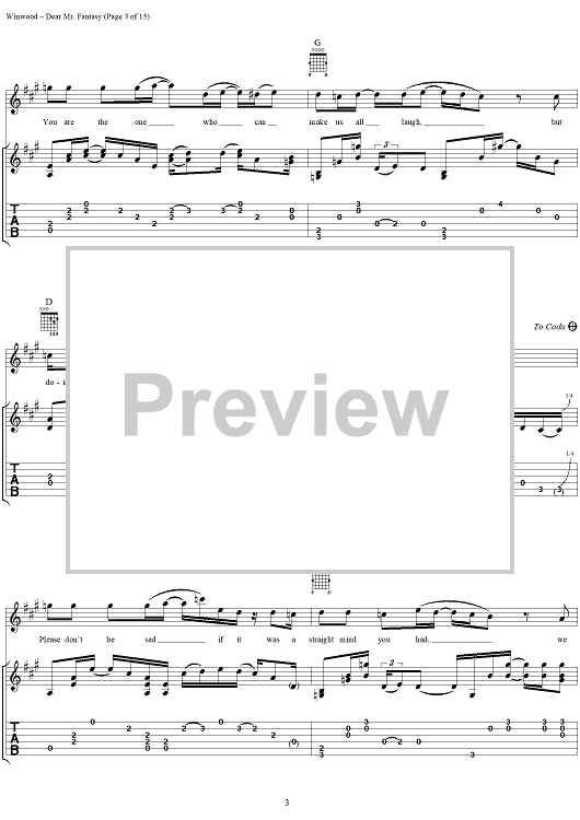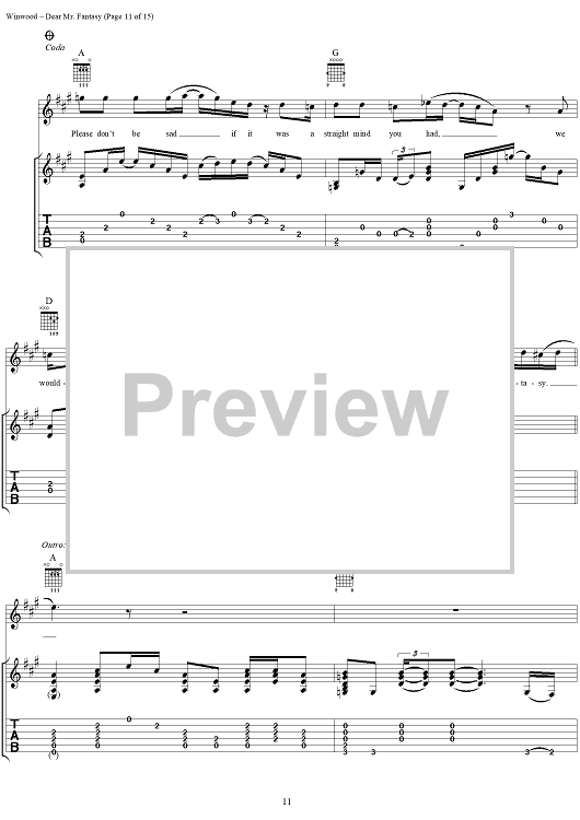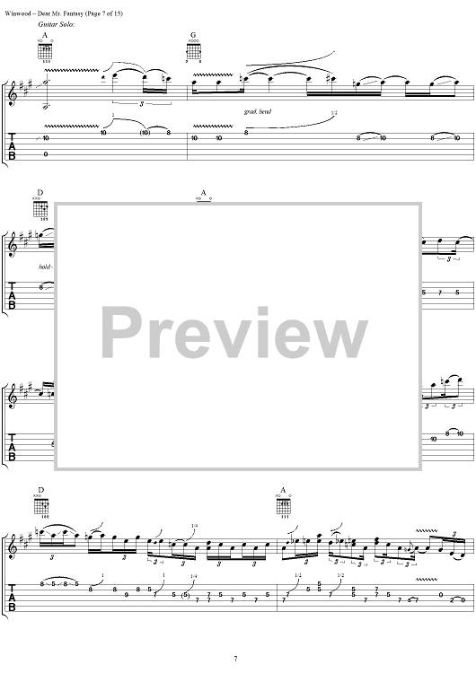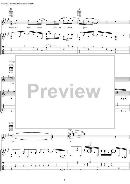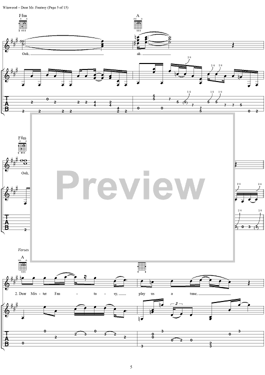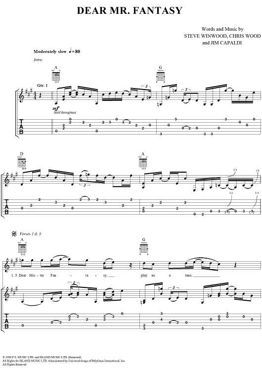 "Dear Mr. Fantasy" Sheet Music by Traffic