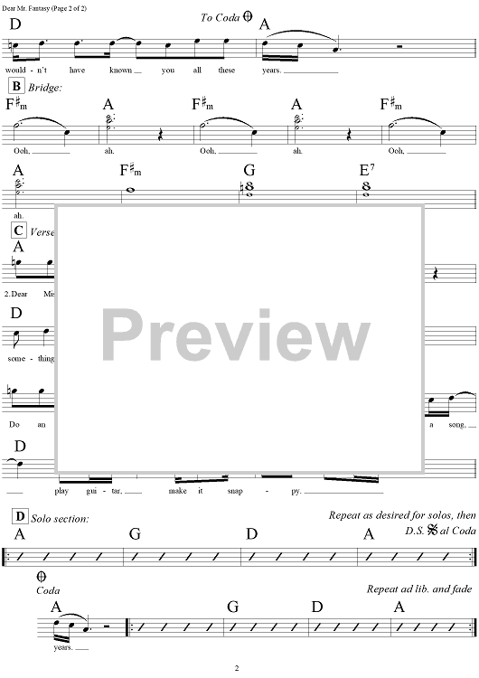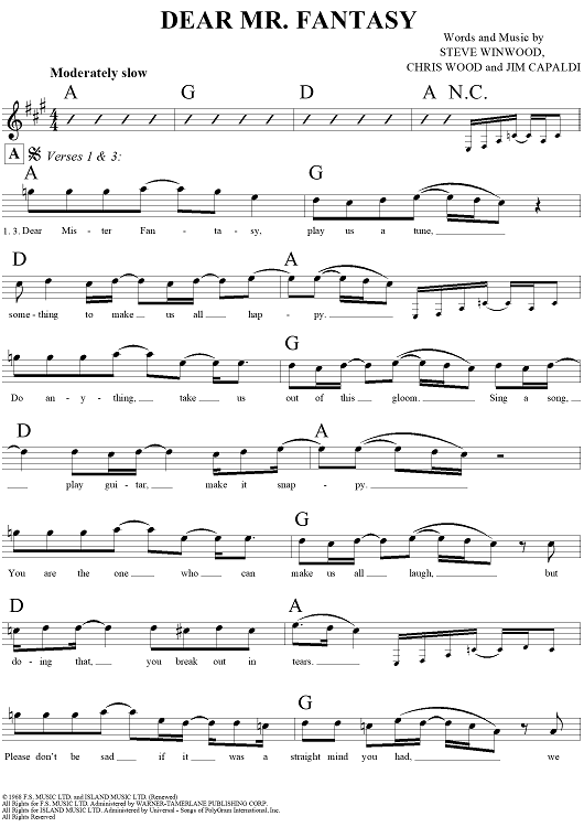 Digital Sheet Music for Dear Mr. Fantasy by Traffic, Steve Winwood, Jim Capaldi, Chris Wood scored for Lead Sheet; id:293893