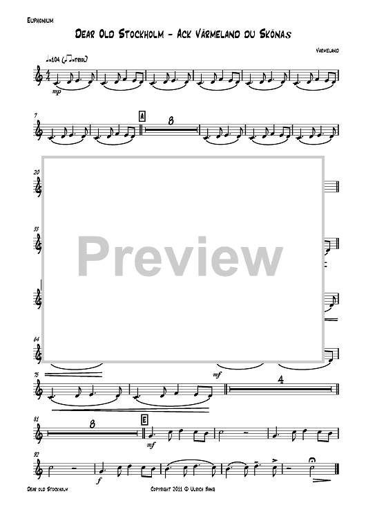 Digital Sheet Music for Dear Old Stockholm - Ack Värmeland du Skönas - Euphonium by , Varmeland, Ulrich Bang scored for Brass Ensemble; id:419930