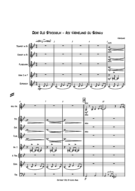Digital Sheet Music for Dear Old Stockholm - Ack Värmeland du Skönas - Score by , Varmeland, Ulrich Bang scored for Brass Ensemble; id:419918