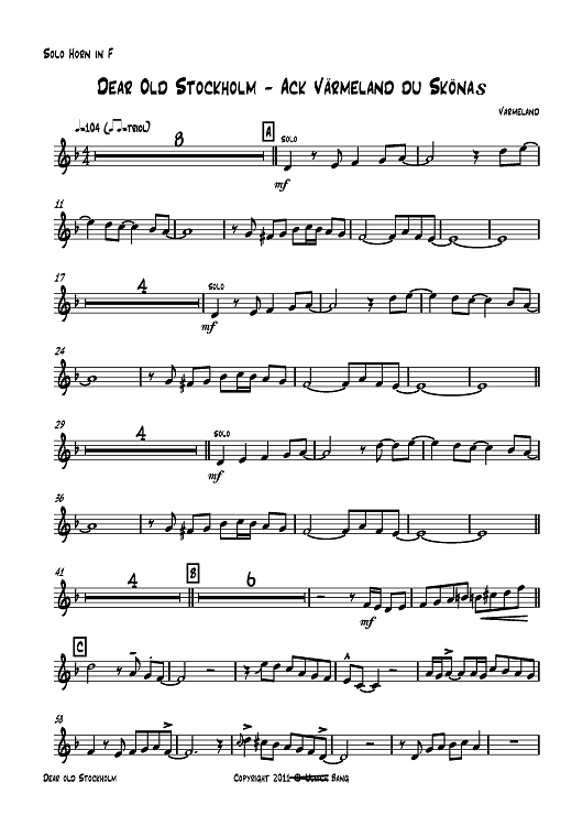 Digital Sheet Music for Dear Old Stockholm - Ack Värmeland du Skönas - Solo Horn in F by , Varmeland, Ulrich Bang scored for Brass Ensemble; id:419924