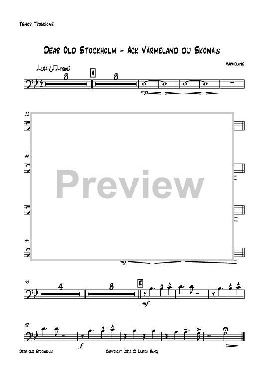 Digital Sheet Music for Dear Old Stockholm - Ack Värmeland du Skönas - Tenor Trombone by , Varmeland, Ulrich Bang scored for Brass Ensemble; id:419928