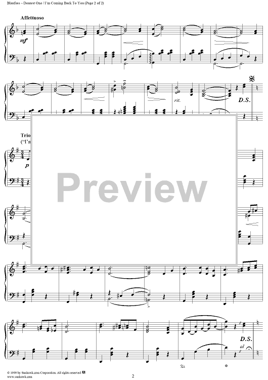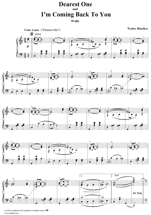 Digital Sheet Music for Dearest One/I'm Coming Back To You (Waltz) by Walter Blaufuss scored for Piano/Vocal; id:274912