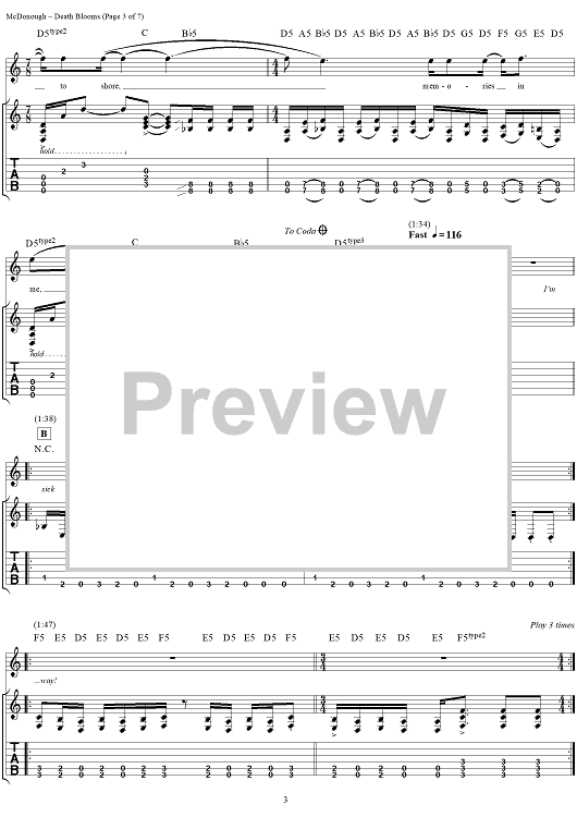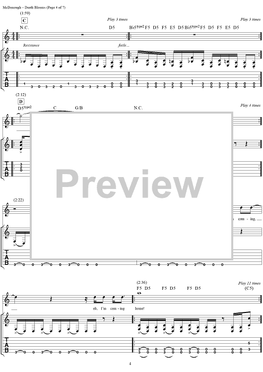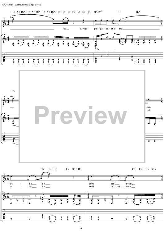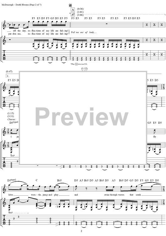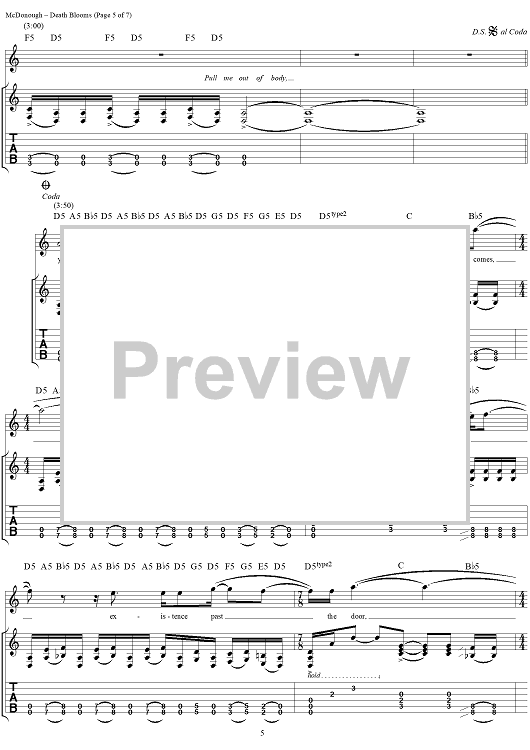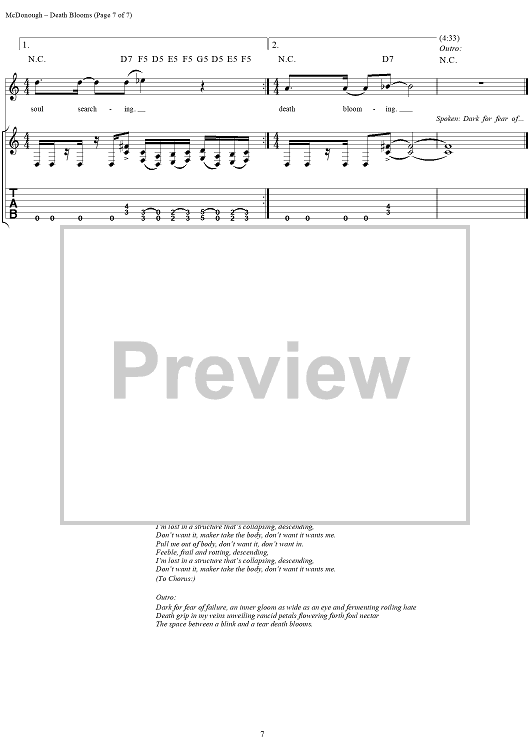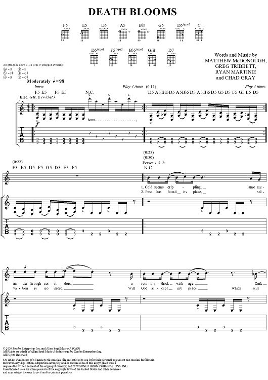 Digital Sheet Music for Death Blooms by Matthew McDonough, Gurrg, Ry-Know, Chad Gray, Mudvayne scored for Guitar Tab/Vocal; id:286617