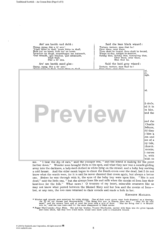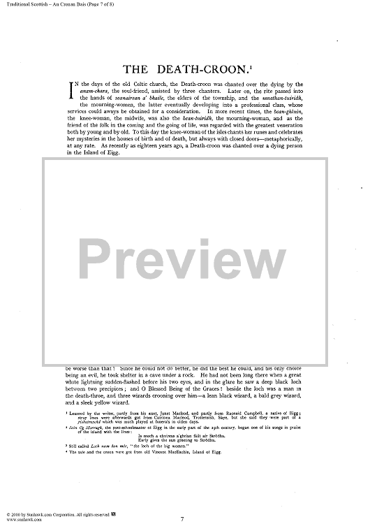 Digital Sheet Music for Death Croon by Marjory Kennedy-Fraser, Traditional scored for Piano/Vocal; id:234751