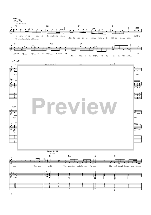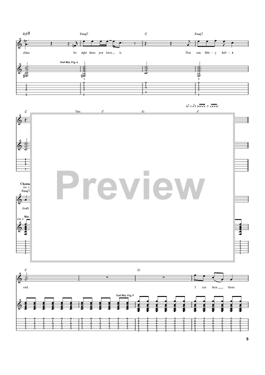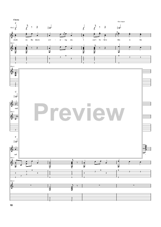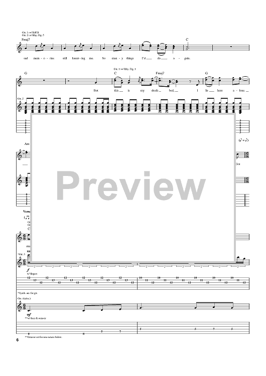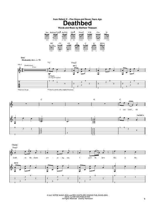 Digital Sheet Music for Deathbed by Relient K, Matt Thiessen scored for Guitar Tab; id:397515