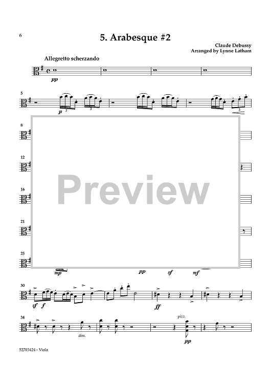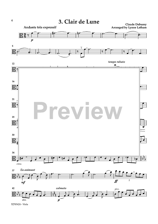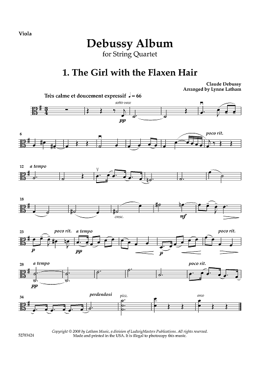 Digital Sheet Music for Debussy Album - Viola by Claude Debussy, Lynne Latham scored for String Quartet; id:462836