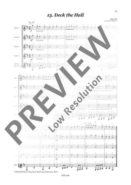 Digital Sheet Music for Deck The Hall by Irina Kircher scored for 3-5 Guitars; id:495946