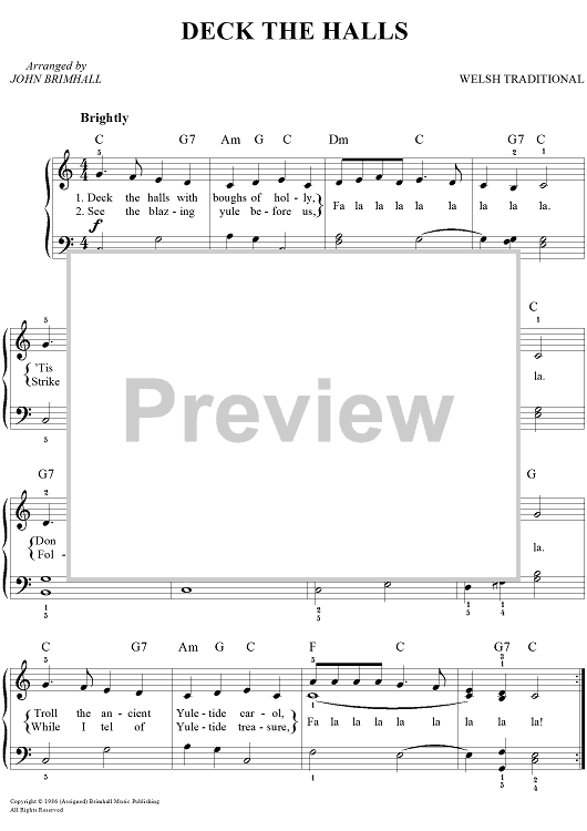 Digital Sheet Music for Deck the Halls by John Brimhall, Welsh Carol scored for Easy Piano/Vocal/Chords; id:450528