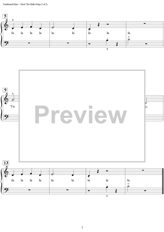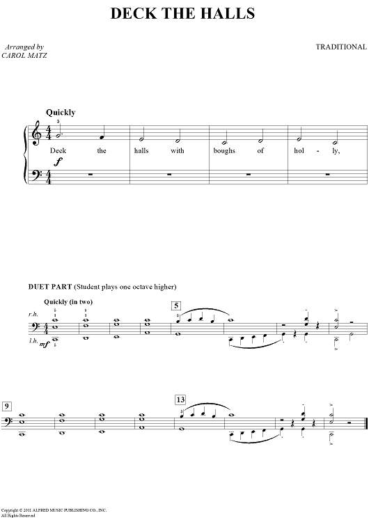Digital Sheet Music for Deck The Halls by Carol Matz, Traditional scored for Piano; id:453386