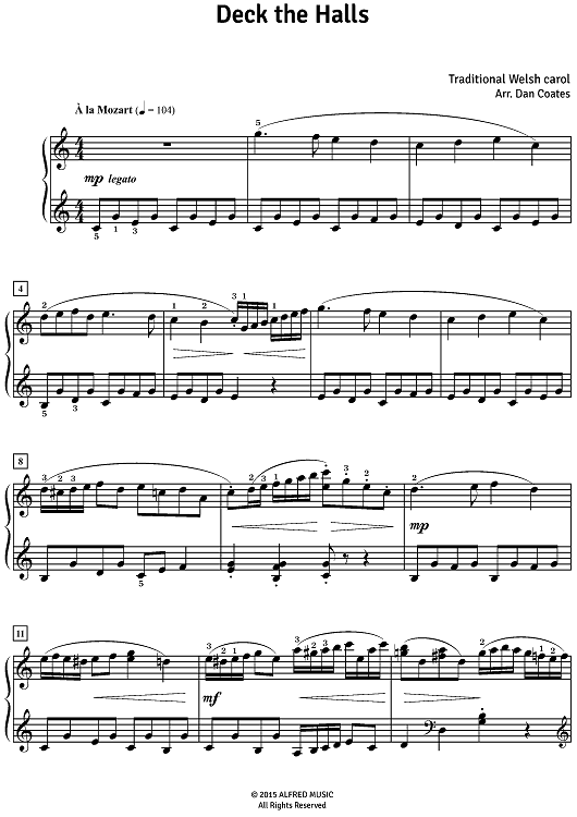 Digital Sheet Music for Deck the Halls by Dan Coates, Felix Bernard scored for Piano Solo; id:501213