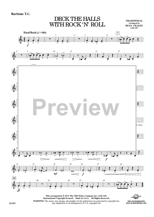 Digital Sheet Music for Deck the Halls with Rock ‘n’ Roll - Baritone TC by Traditional, Ryan Fraley scored for Concert Band; id:426030