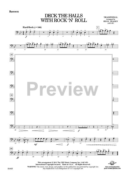 Digital Sheet Music for Deck the Halls with Rock ‘n’ Roll - Bassoon by Traditional, Ryan Fraley scored for Concert Band; id:426018