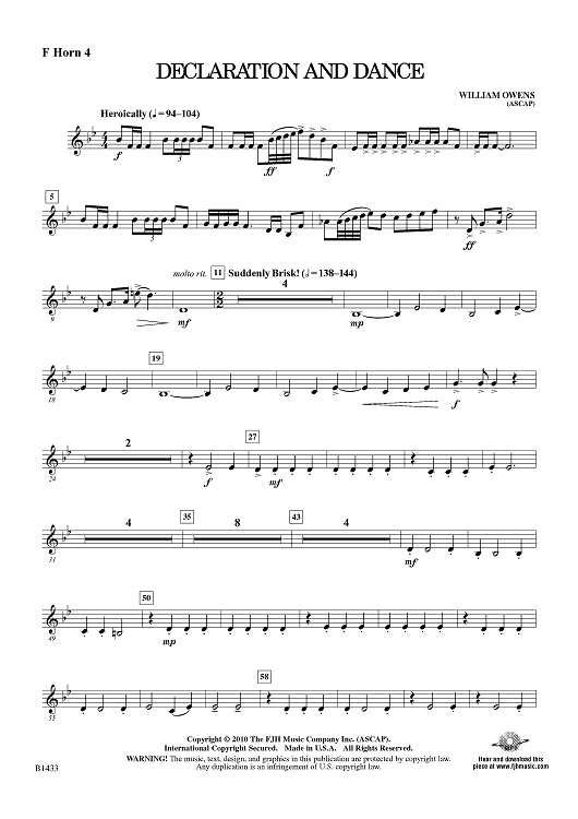 Digital Sheet Music for Declaration and Dance - F Horn 4 by William Owens scored for Symphonic Band; id:415632