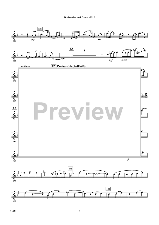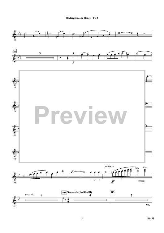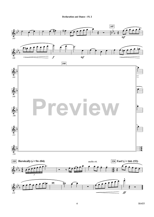 Digital Sheet Music for Declaration and Dance - Flute 2 by William Owens scored for Symphonic Band; id:415612
