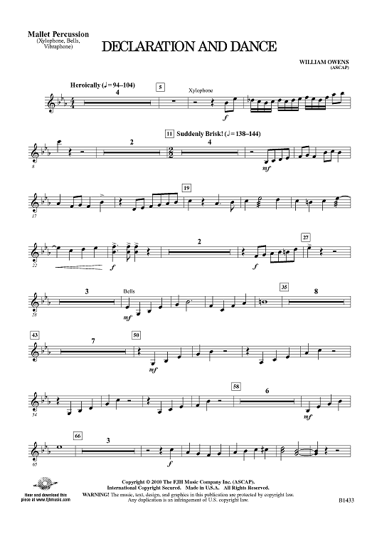 Digital Sheet Music for Declaration and Dance - Mallet Percussion by William Owens scored for Symphonic Band; id:415641