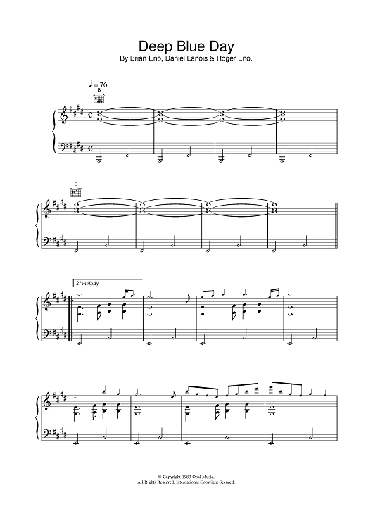Digital Sheet Music for Deep Blue Day by Brian Eno scored for Piano/Vocal/Chords; id:376155