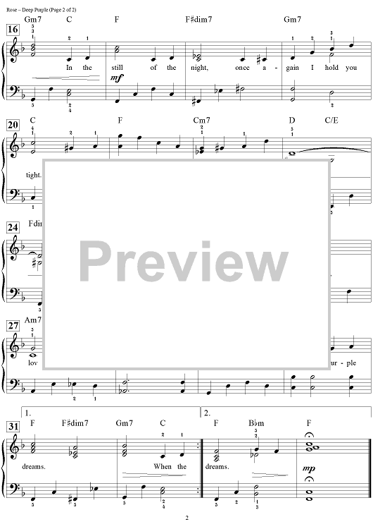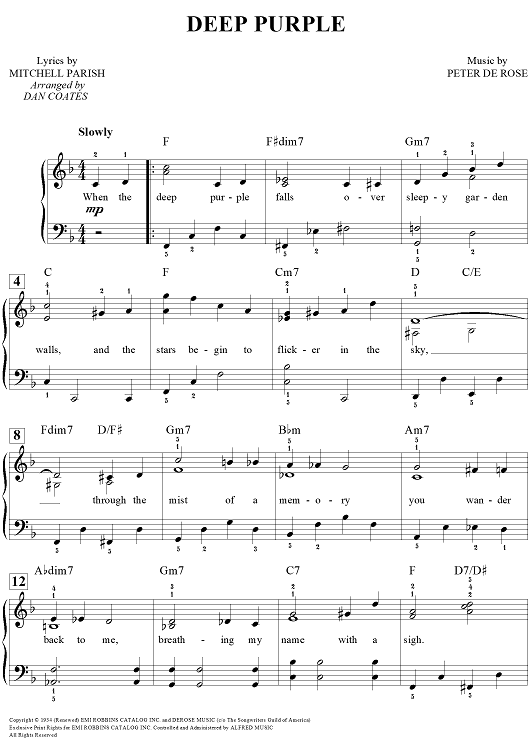 Digital Sheet Music for Deep Purple by Dan Coates, Mitchell Parish, Peter DeRose scored for Easy Piano/Vocal/Chords; id:448774