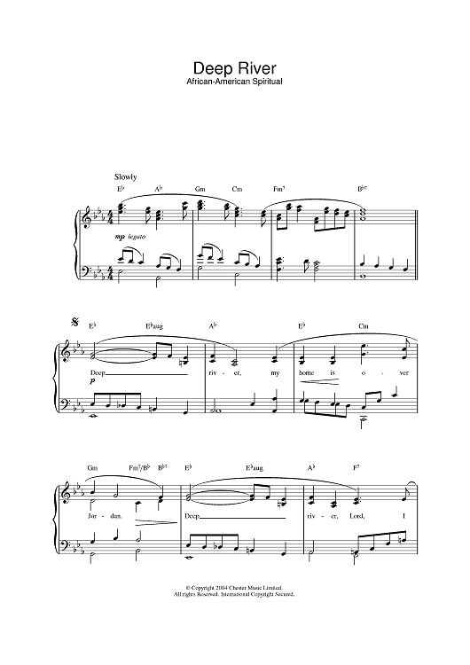 Digital Sheet Music for Deep River by scored for Piano/Vocal/Chords; id:378606