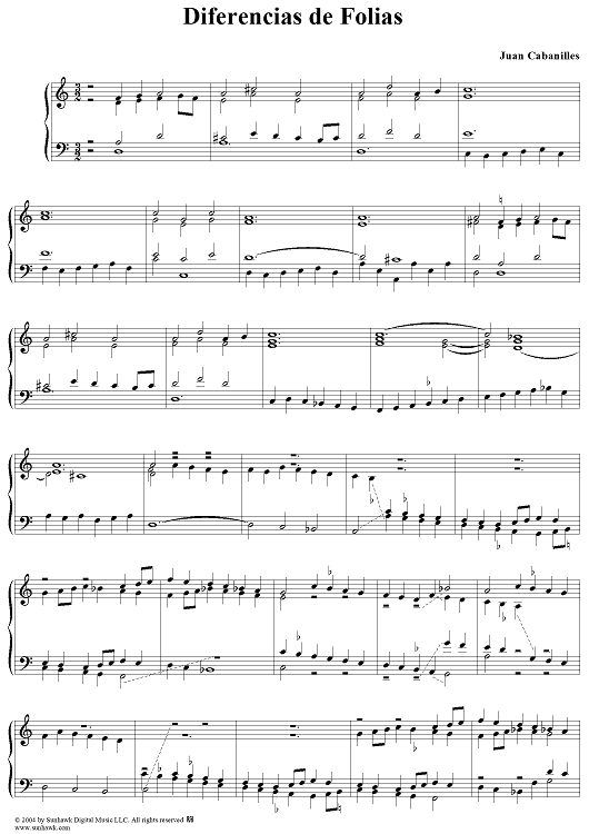 "Deferencias de Folias" Sheet Music by Juan Cabanilles