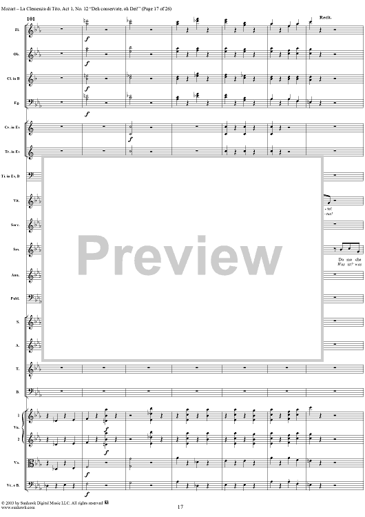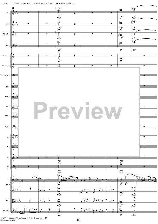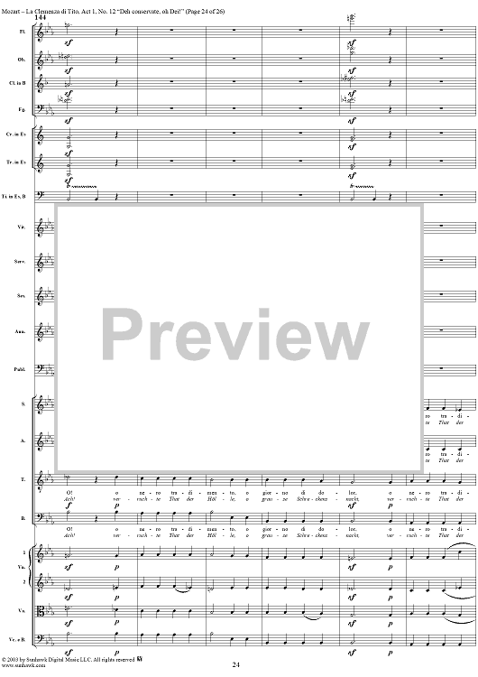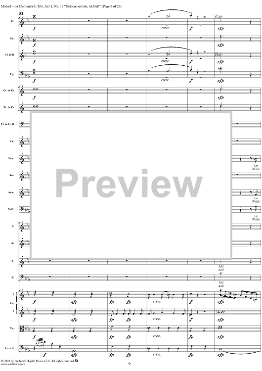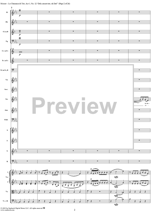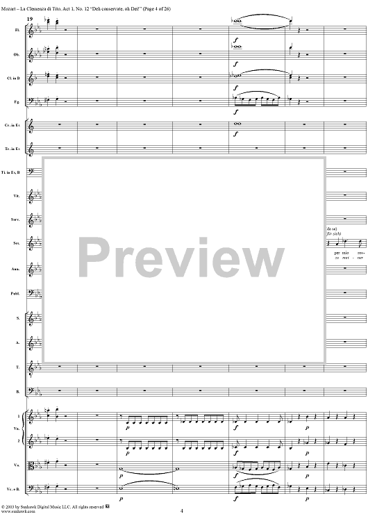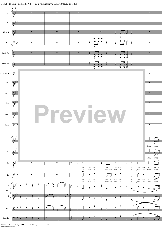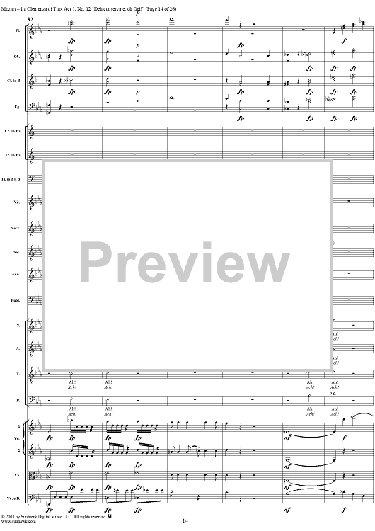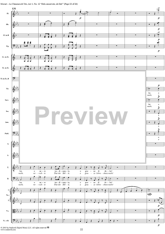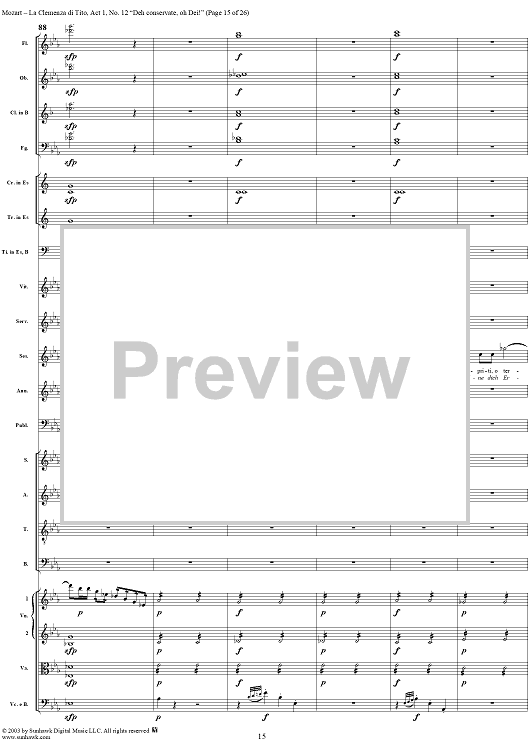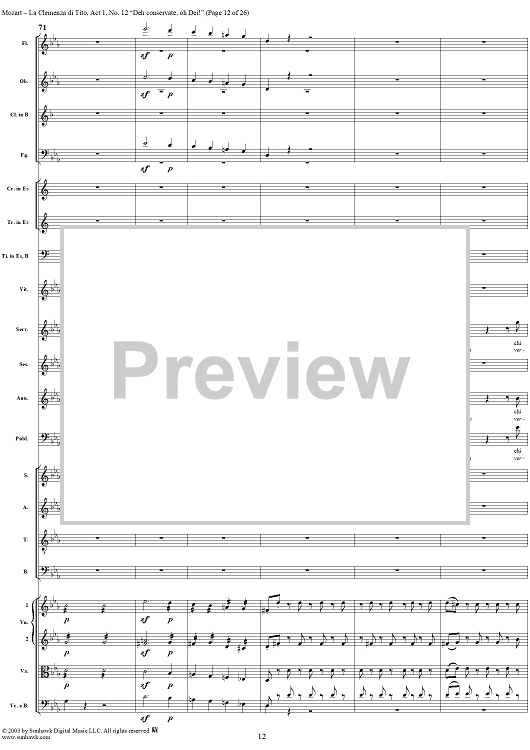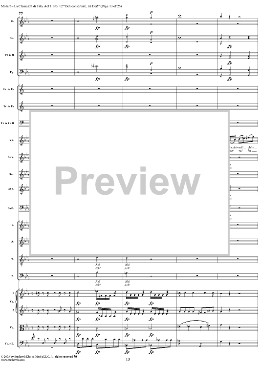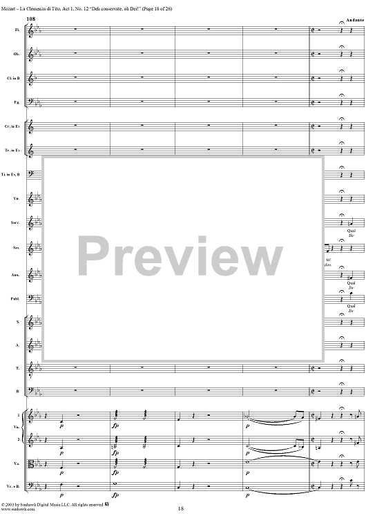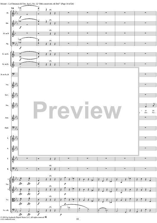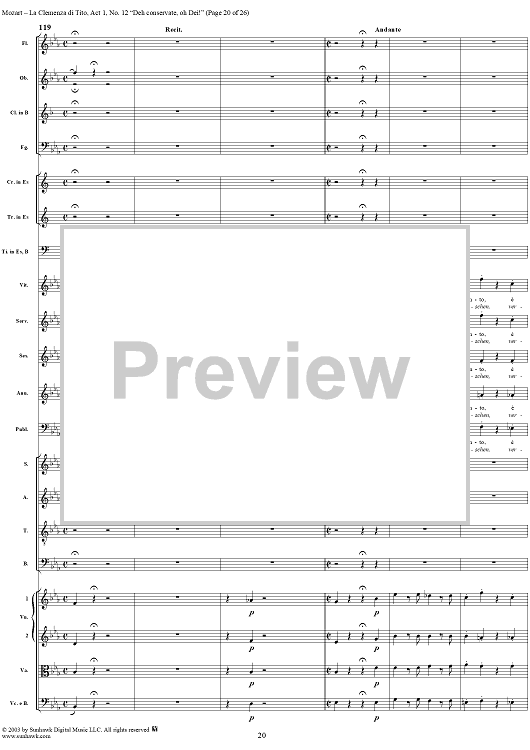Digital Sheet Music for "Deh conservate, oh Dei!", No. 12 from "La Clemenza di Tito", Act 1 (K621) - Full Score by Wolfgang Amadeus Mozart scored for Voice and Orchestra; id:291606
