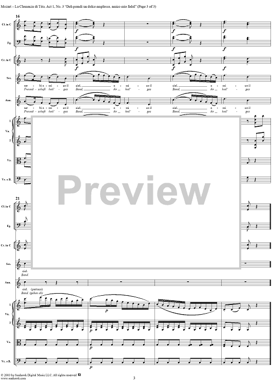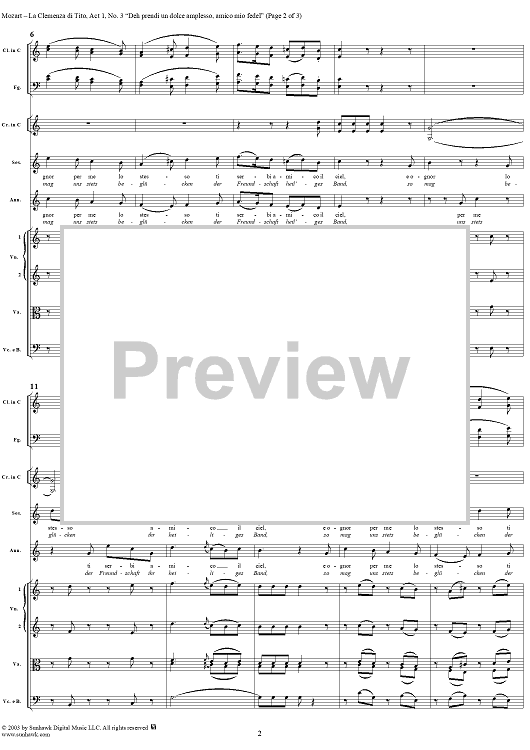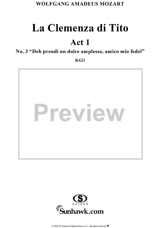Digital Sheet Music for "Deh prendi un dolce amplesso, amico mio fedel", No. 3 from "La Clemenza di Tito", Act 1 (K621) - Full Score by Wolfgang Amadeus Mozart scored for Voice and Orchestra; id:291593