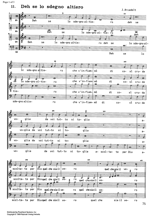 Digital Sheet Music for Deh se lo sdegno altiero from 20 Madrigali - Score by , Jacques Arcadelt scored for SATB Choir; id:354385