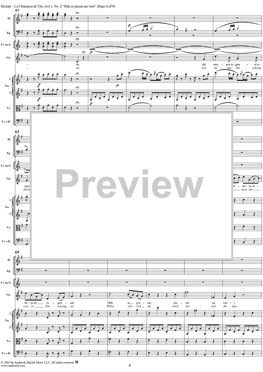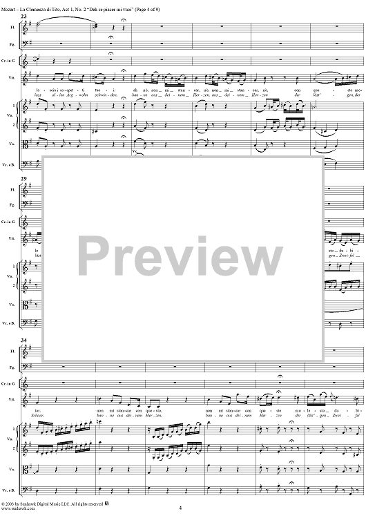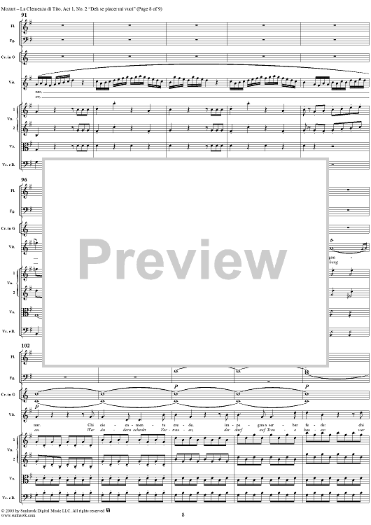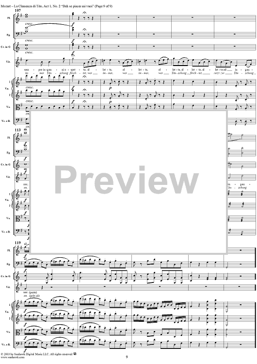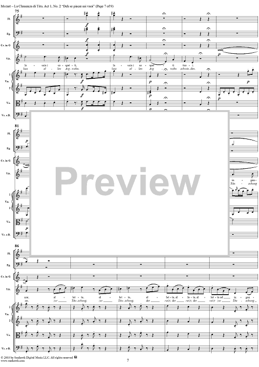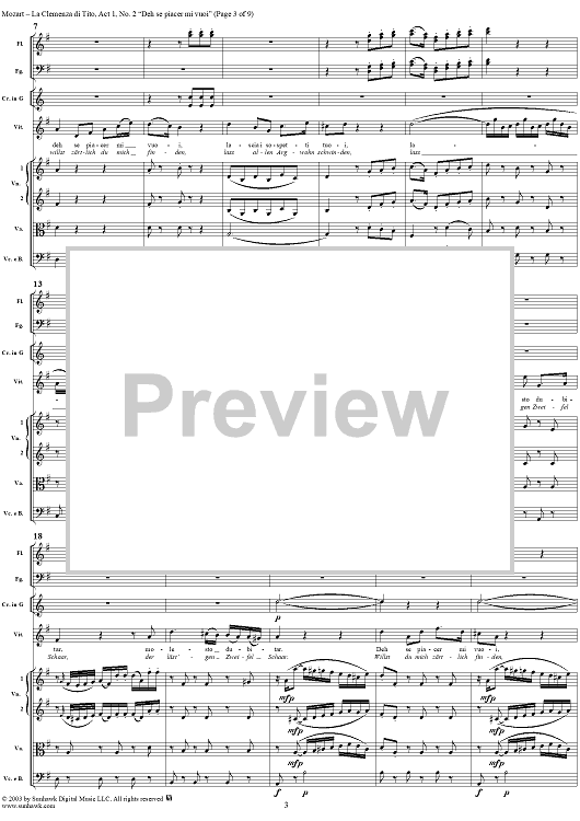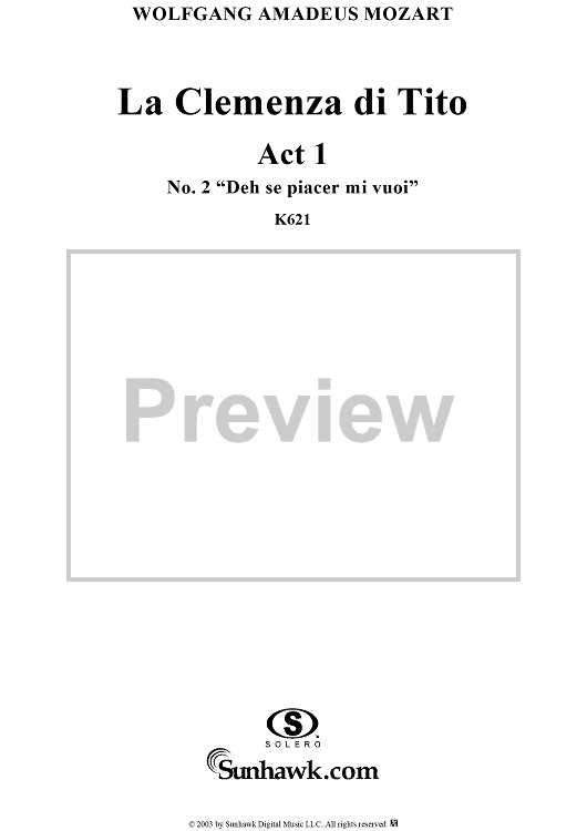Digital Sheet Music for "Deh se piacer mi vuoi", No. 2 from "La Clemenza di Tito", Act1 (K621) - Full Score by Wolfgang Amadeus Mozart scored for Voice and Orchestra; id:291591