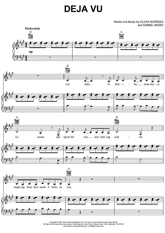 Digital Sheet Music for Deja Vu by Daniel Nigro, Olivia Rodrigo scored for Piano/Vocal/Chords; id:469160