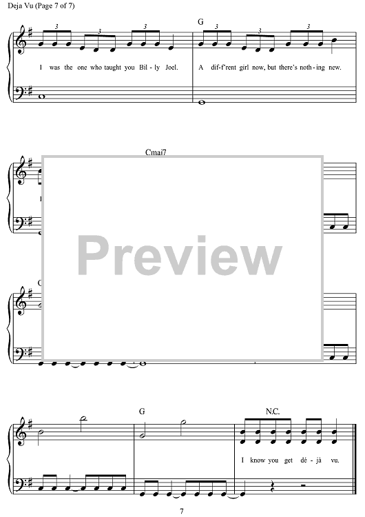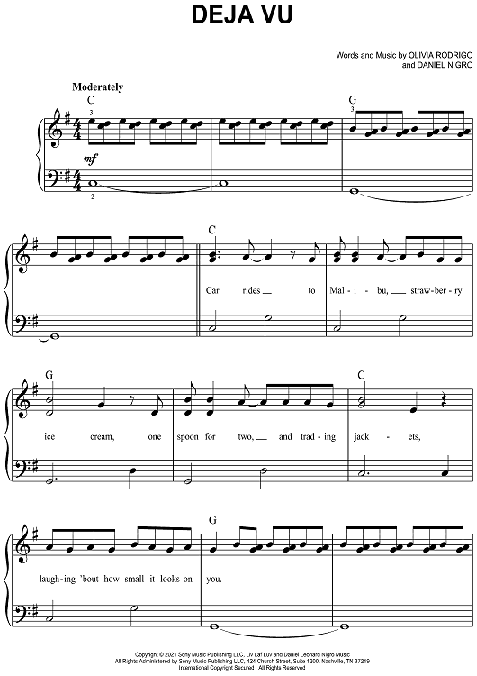 Digital Sheet Music for Deja Vu by Daniel Nigro, Olivia Rodrigo scored for Easy Piano/Vocal/Chords; id:469163