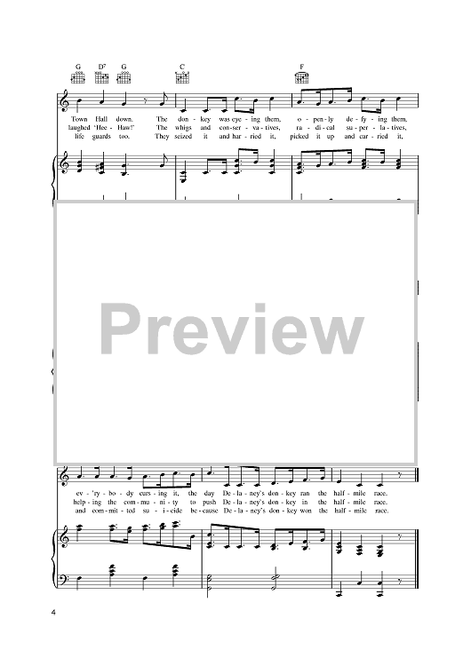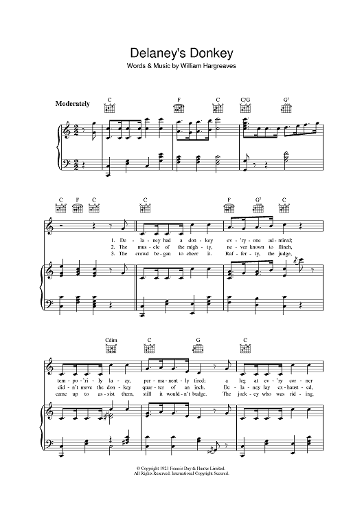 Digital Sheet Music for Delaney's Donkey by William Hargreaves scored for Piano/Vocal/Chords; id:392761