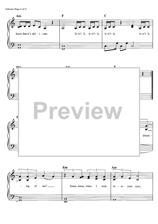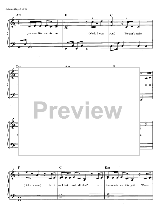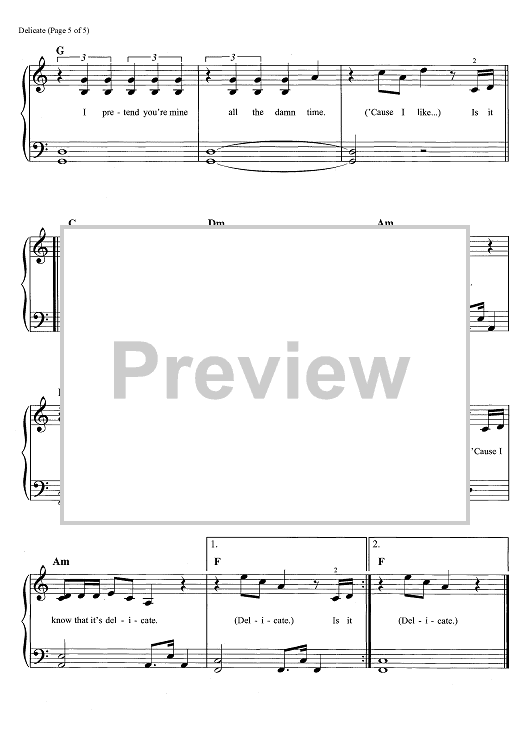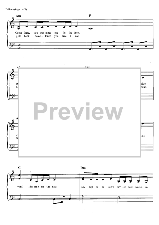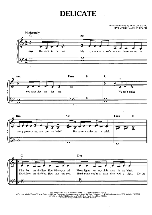 Digital Sheet Music for Delicate by Max Martin, Taylor Swift, Shellback scored for Easy Piano/Vocal/Chords; id:466058