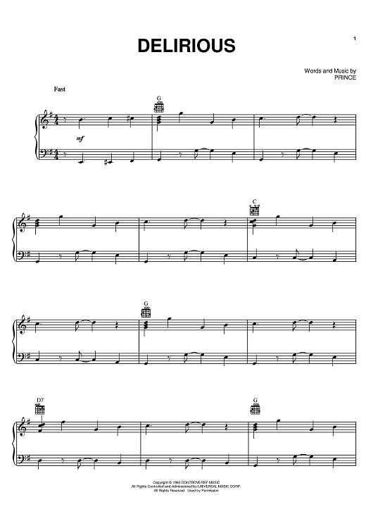 Digital Sheet Music for Delirious by Prince scored for Piano/Vocal/Chords; id:398283