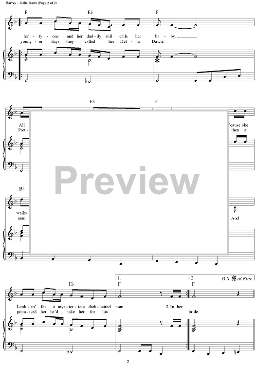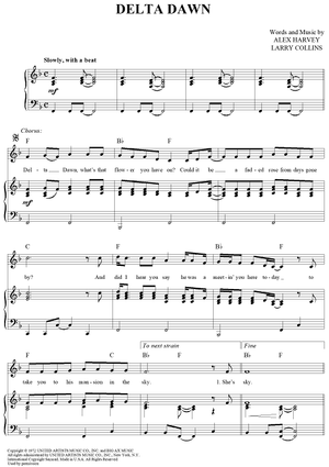Digital Sheet Music for Delta Dawn by Helen Reddy, Larry Collins, Alex Harvey scored for Piano/Vocal/Chords; id:363095