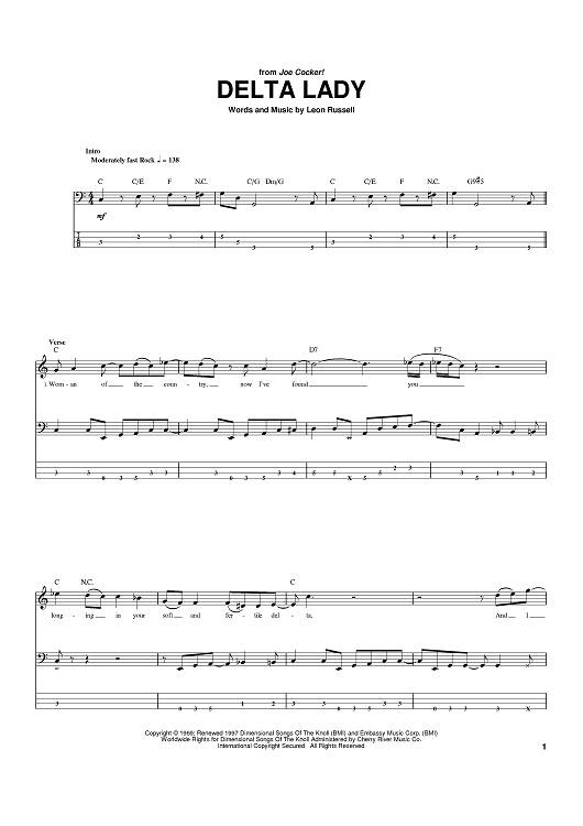 Digital Sheet Music for Delta Lady by Leon Russell scored for Bass Tab; id:392678
