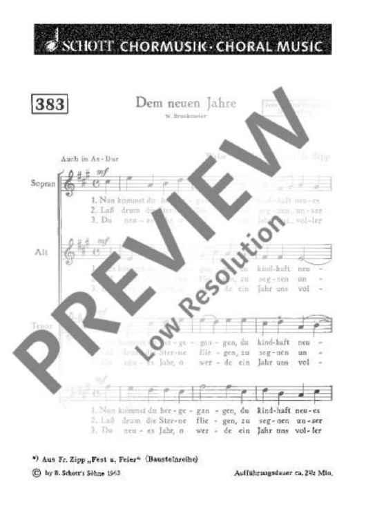 Digital Sheet Music for Dem neuen Jahre - Choral Score by Friedrich Zipp scored for Mixed Choir A Cappella; id:479649