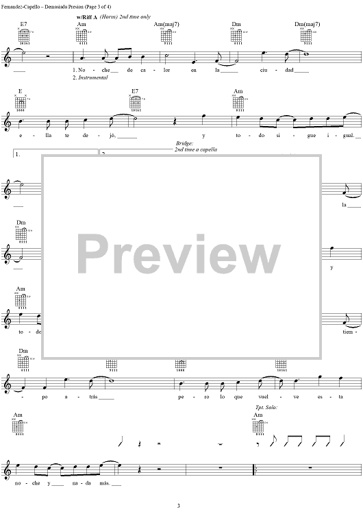 Digital Sheet Music for Demasiada Presion by Gabriel Fernandez-Capello, Los Fabulosos Cadillacs scored for Lead Sheet; id:269959