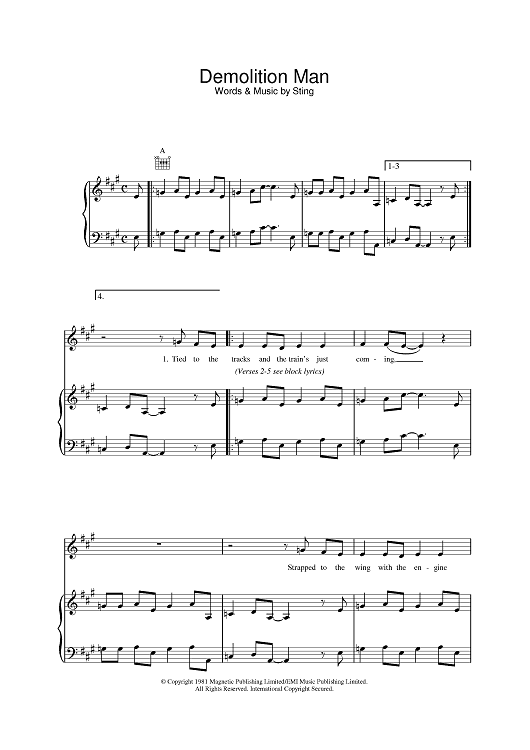 Digital Sheet Music for Demolition Man by Sting, The Police scored for Piano/Vocal/Chords; id:390046